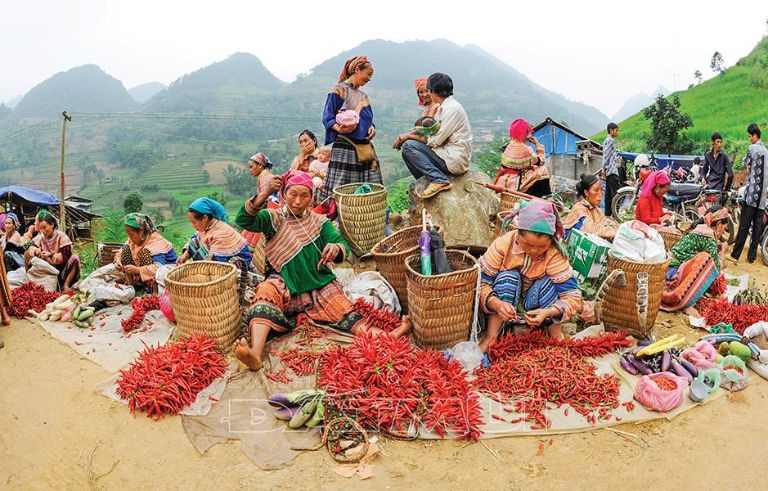 • Tham gia chợ phiên: Họp vào sáng Chủ nhật (Đồng Văn) hoặc thứ 7 (Mèo Vạc), chợ phiên đậm bản sắc dân tộc (Mông, Dao, Tày). Tại đây bạn có thể mua thổ cẩm, thử thắng cố nóng hổi, uống rượu ngô và giao lưu với người dân địa phương trong trang phục truyền thống.