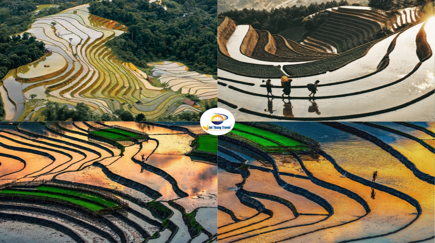 • Mùa nước đổ (tháng 5–6): Ruộng bậc thang Hoàng Su Phì, Hoàng Thanh ngập nước lấp lánh như gương. Trời có thể mưa rào nhưng cảnh quan xanh tươi mê đắm.