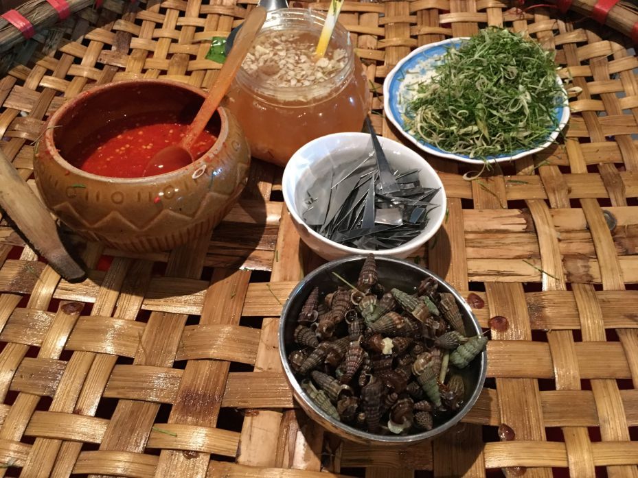 Ốc mút – Ốc lớn ở cửa biển, luộc chấm mắm gừng. Mùa ốc chủ yếu 9-12, đầy quán Sầm Sơn, Hải Hòa.