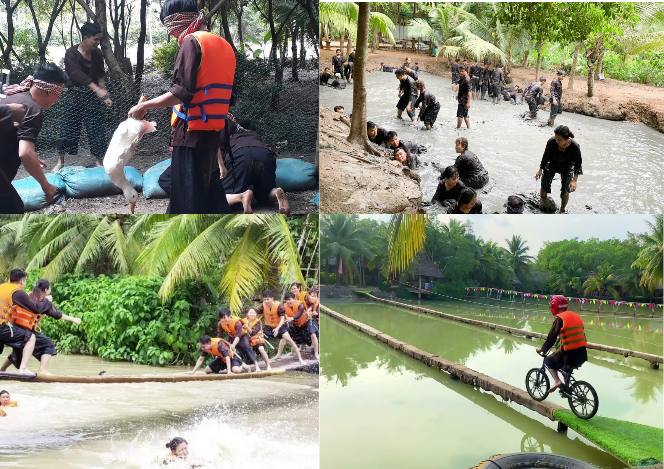 - Tham gia trò chạy xe đạp qua cầu ván, cầu lắc