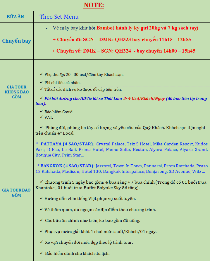 TOUR THÁI LAN 5 NGÀY 4 ĐÊM