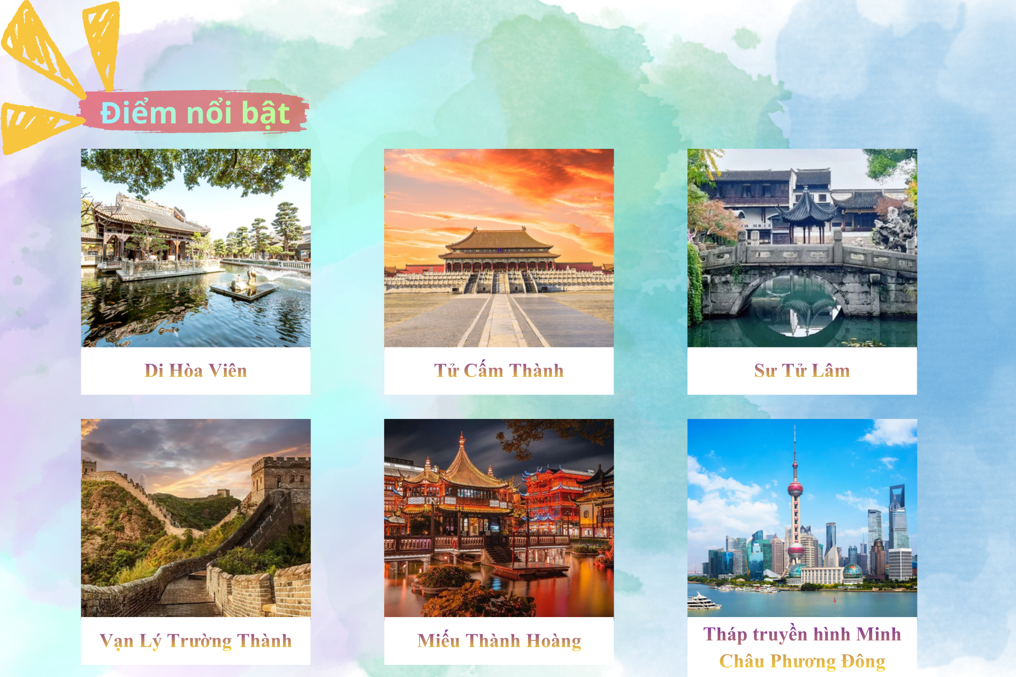 Hành trình Hàng Châu – Ô Trấn – Thượng Hải – Tô Châu – Vô Tích – Bắc Kinh đưa du khách khám phá trọn vẹn vẻ đẹp đa sắc của Trung Hoa, nơi cổ kính và hiện đại hòa quyện tinh tế. Hàng Châu thơ mộng với Tây Hồ, Ô Trấn trầm lắng mang nét cổ trấn nghìn năm, Tô Châu duyên dáng với vườn cổ và kênh đào, Vô Tích nổi bật bởi cảnh sắc sông nước yên bình. Trái ngược là Thượng Hải sôi động, hiện đại bậc nhất châu Á, trước khi hành trình khép lại tại Bắc Kinh uy nghi với Cố Cung, Vạn Lý Trường Thành và bề dày lịch sử. Tất cả tạo nên chuyến đi giàu cảm xúc, vừa lãng mạn, vừa hùng tráng và khó quên.